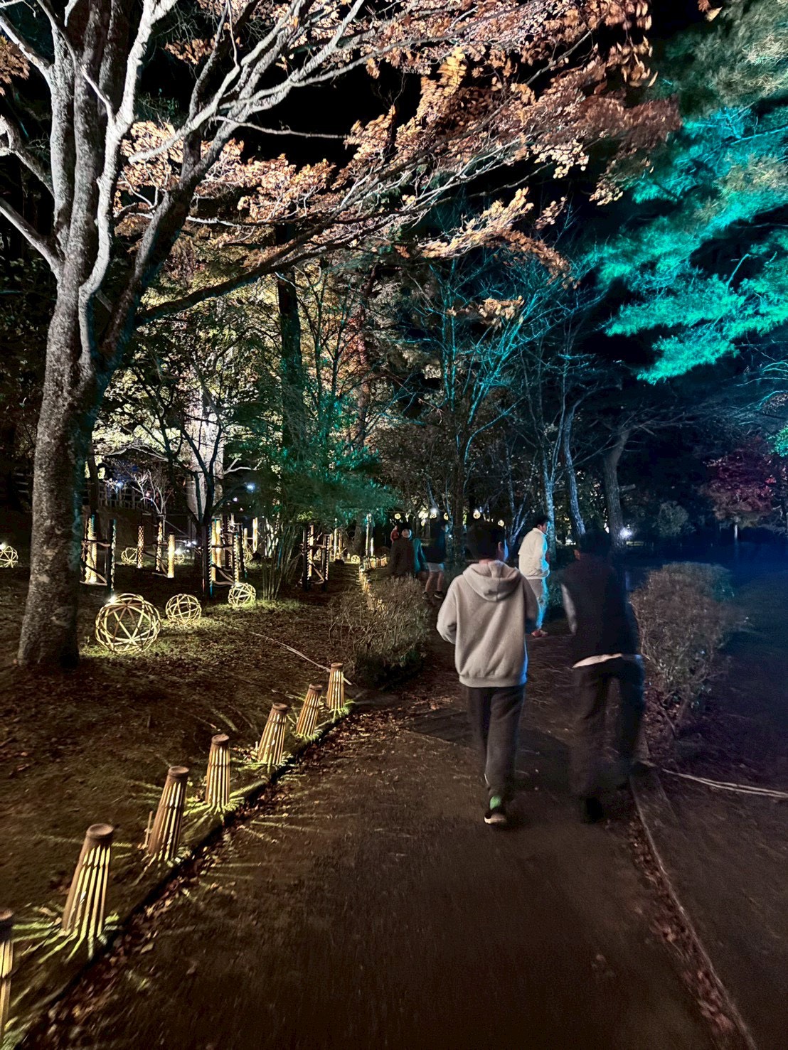 🍁山中湖の秋に包まれて——紅葉ライトアップと竹灯籠の幻想的な夜を寮生たちとともに